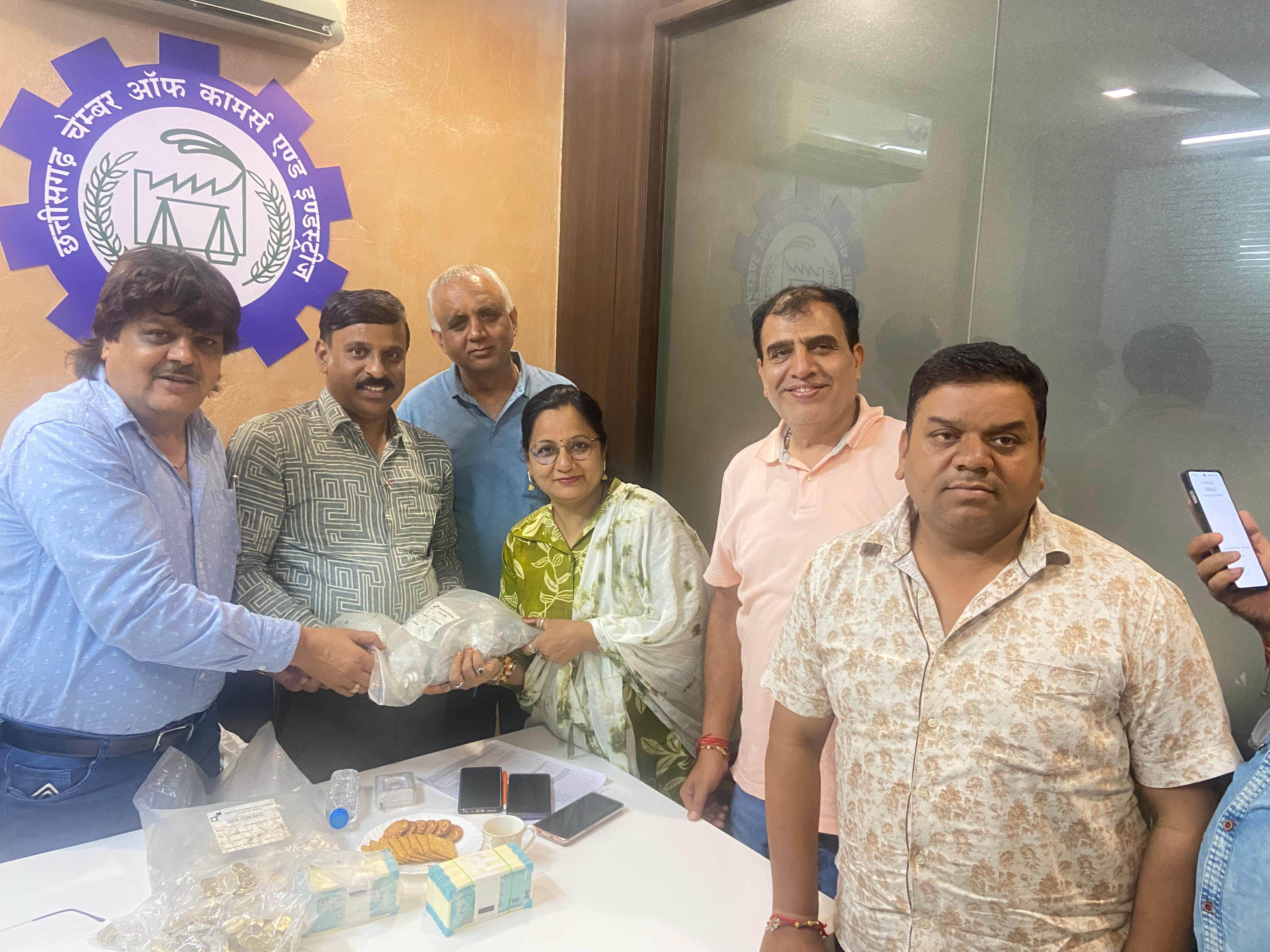 भारतीय स्टेट बैंक मनी चेस्ट बैरनबाजार रायपुर ने चेंबर भवन में व्यापारिक संघों को वितरित किए चिल्लर